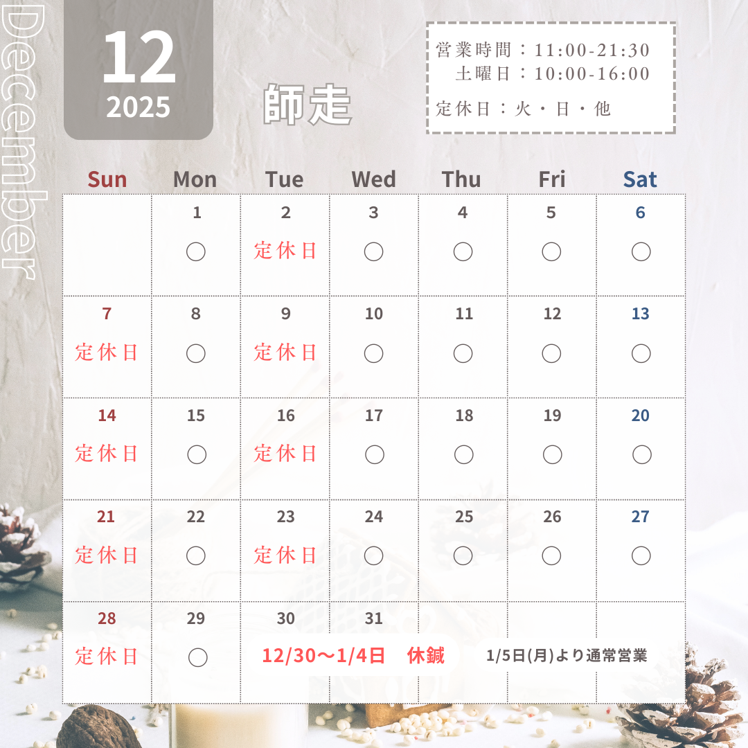 | 営業時間 | 11:00〜21:30(最終受付:20:30) ※土曜日:10:00~16:00(最終受付15:00) (予約制) |